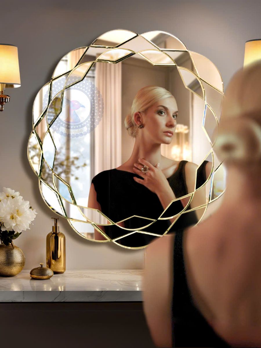 The Artistic Circle Bathroom Mirror Elisa NAV 2019 For Hotel Bathroom Projects redefines classic beauty with a modern twist. Its flowing, petal-like mirror segments radiate from the center in an elegant, overlapping design that mimics the soft geometry of a blooming flower. Mounted in a luxurious bathroom or dressing area, it acts as both a functional mirror and an exquisite sculptural piece.
