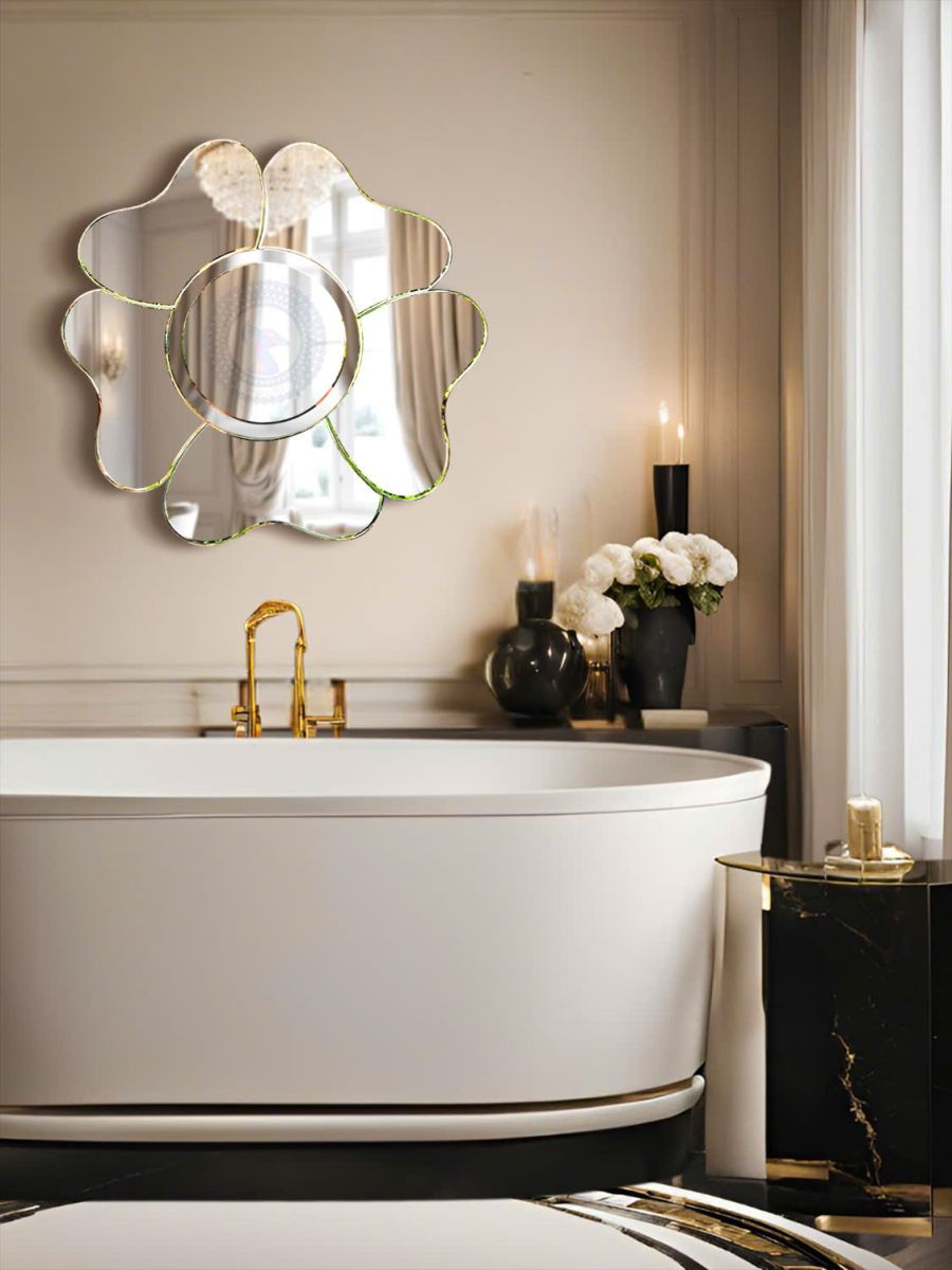 The Artistic Decoration Mirror Sorrel NAV 2133 For Hotel Bathroom Projects brings playful sophistication to modern bathrooms with its petal-shaped mirror design. Inspired by blooming flora, each petal-like contour curves gracefully around a circular central mirror, creating a fresh and radiant statement piece. This is not just a mirror—it’s a visual celebration of organic form and artistic intent.