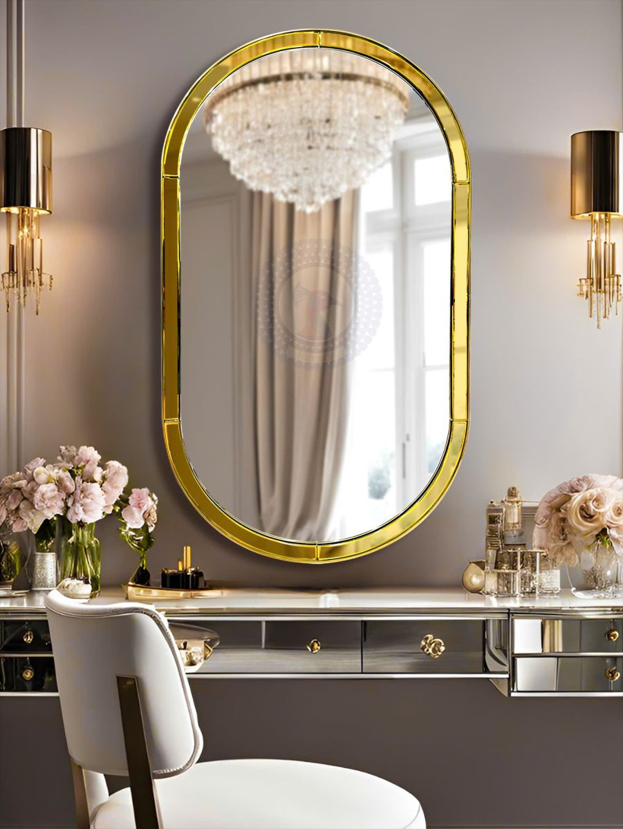 The Artistic Vanity Mirror NAV 2132 For Hotel Bedroom Projects blends minimalist design with a touch of gold elegance. Its classic arched silhouette softens any space, while the high-shine golden trim adds warmth and sophistication. Whether styled above a vanity, in an entryway, or as part of a bathroom refresh, this mirror balances functionality with timeless charm.