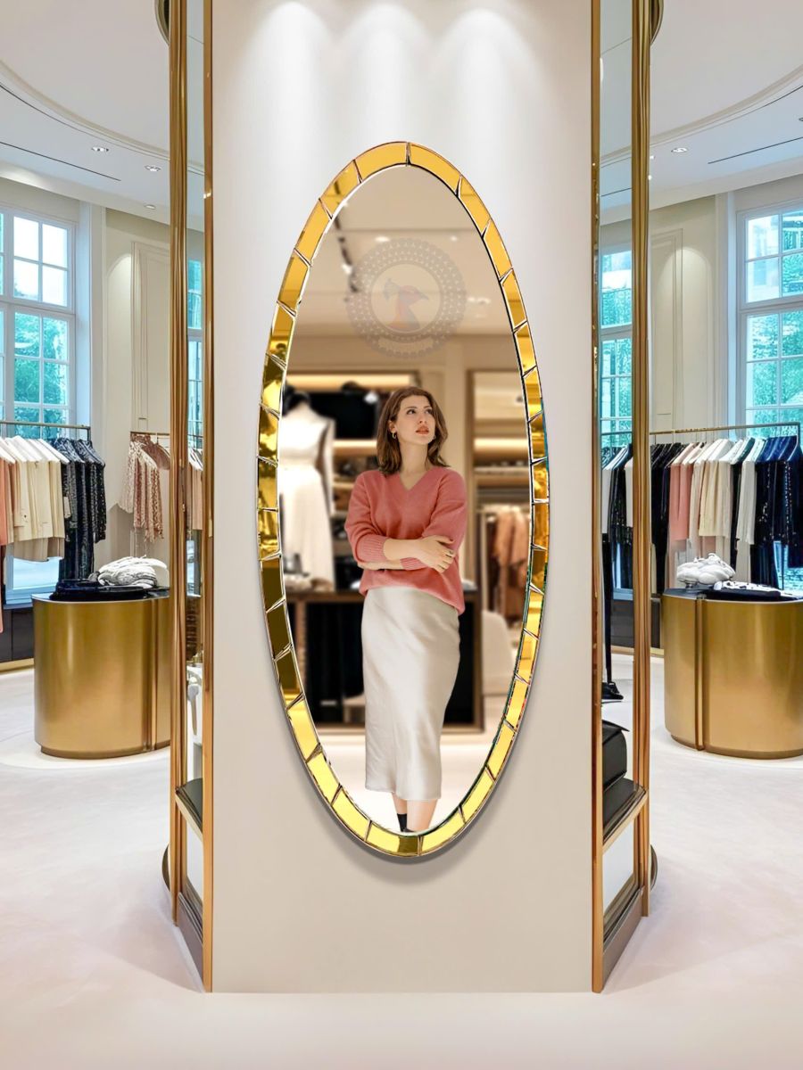 This mirror is the epitome of understated glamour. Whether you're designing a five-star hotel suite or an elegant modern penthouse, the Full-Length Oval Mirror Golden Frame For Hotel Bedroom Projects offers a timeless and luxurious aesthetic that leaves a lasting impression.