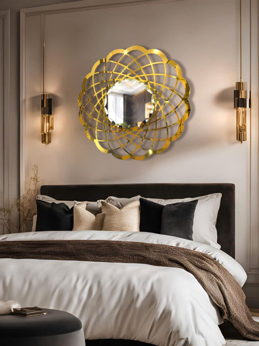 The Artistic Bloom Interior Decoration Mirror For Hotel Livingroom Projects elevates wall decor into fine art. Inspired by the overlapping symmetry of flower petals and sacred geometry, its radiant gold frame encircles the central mirror like a gilded mandala. This mirror transforms any wall into a gallery of sculptural elegance and opulent reflection.