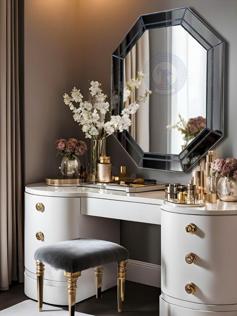 Sleek, striking, and unapologetically chic, the Artistic Decoration Mirror NAV 2131 For Hotel Bedroom Projects transforms everyday reflection into an elevated experience. With its crisp octagonal shape and deeply beveled mirrored edges, this piece delivers architectural sophistication and timeless appeal—perfectly suited for bridal spaces, makeup corners, or refined bedrooms.