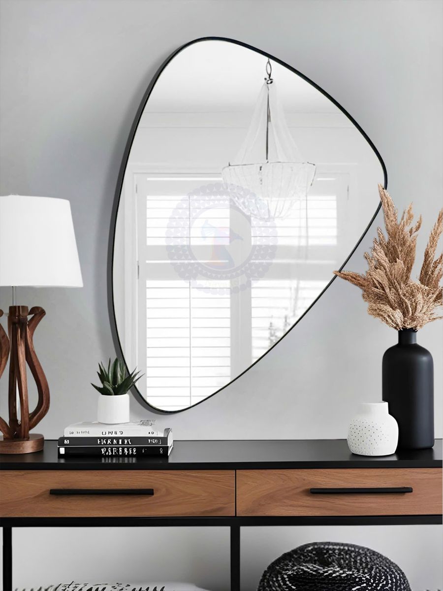 The Artistic Asymmetrical Mirror For Hotel Livingroom Projects redefines everyday reflection with its fluid, organic form. Inspired by nature’s asymmetry and mid-century design sensibilities, this piece adds a sense of movement and elegance to contemporary interiors. The irregular teardrop-like silhouette softens clean-lined walls and brings artistic contrast to both minimalist and eclectic spaces.