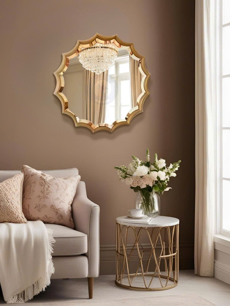 Its compact yet visually impactful design makes it a favorite among interior designers seeking unique statement mirrors for gallery walls, console pairings, or refined resting spaces.