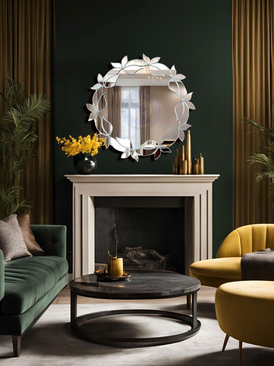 The Artistic Circle Mirror Neur NAV 2044B For Hotel Livingroom Projects captures the quiet elegance of nature with its delicate border of sculpted mirrored leaves. Each glass petal is artfully arranged to form a soft wreath around the central mirror, bringing a sense of calm and organic beauty to the wall. Its design evokes the feeling of a moonlit garden—serene, radiant, and timeless.