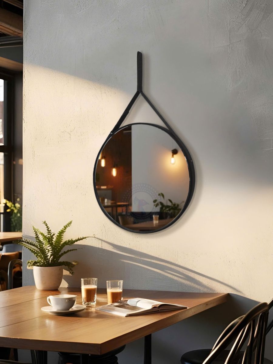 The Artistic Round Wall Decoration Mirror For Hotel Projects NAV 909C is the epitome of sleek, practical design tailored for the modern lifestyle. With a crisp circular silhouette framed in matte black, this piece seamlessly integrates into contemporary and transitional décor. What sets it apart is the distinctive top-mounted hanging strap—a smart and stylish alternative to traditional mounting, offering both ease and design flair.