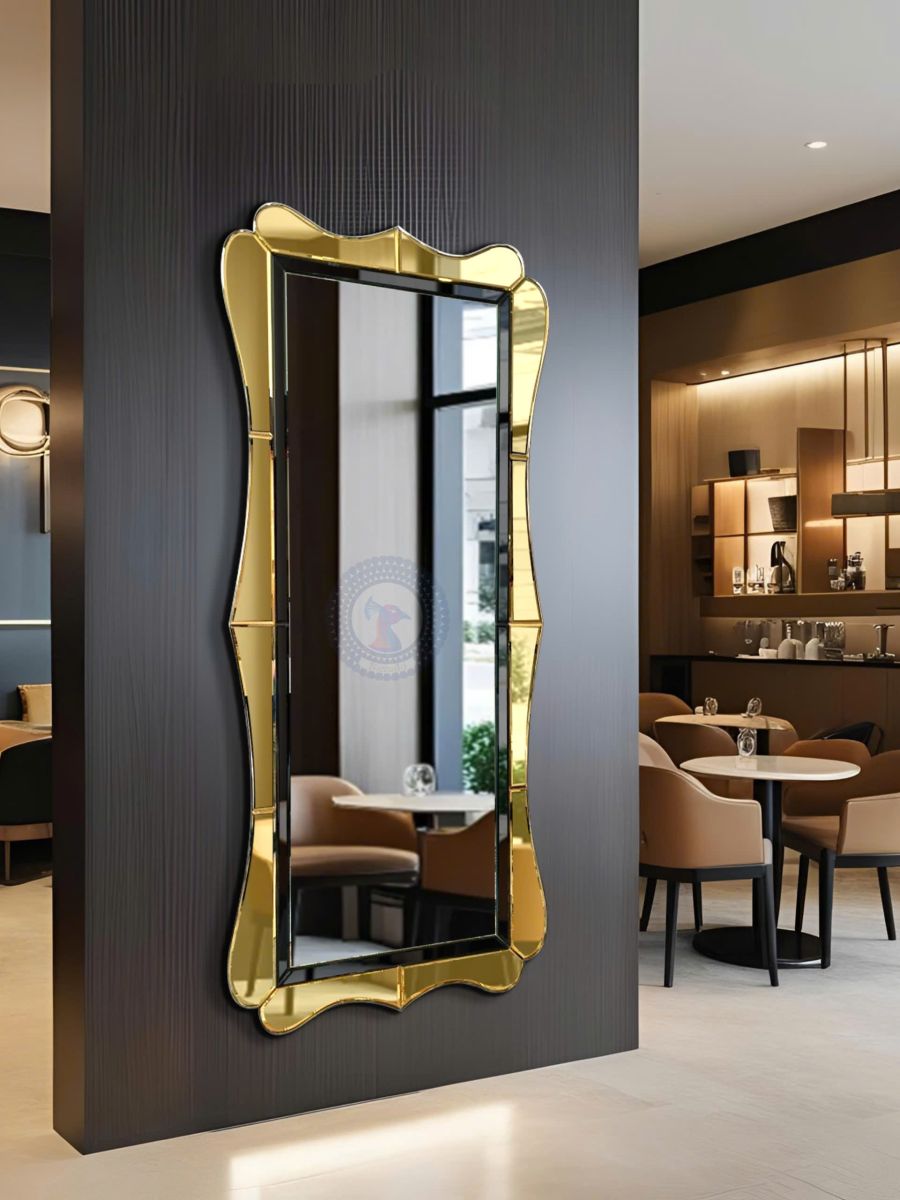 Full-Length Artistic Golden Curved Mirror For Hotel Projects