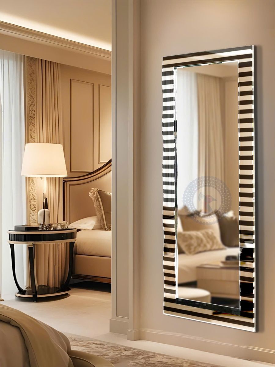 Striped Geometric Full-Length Mirror For Hotel Bedroom Projects