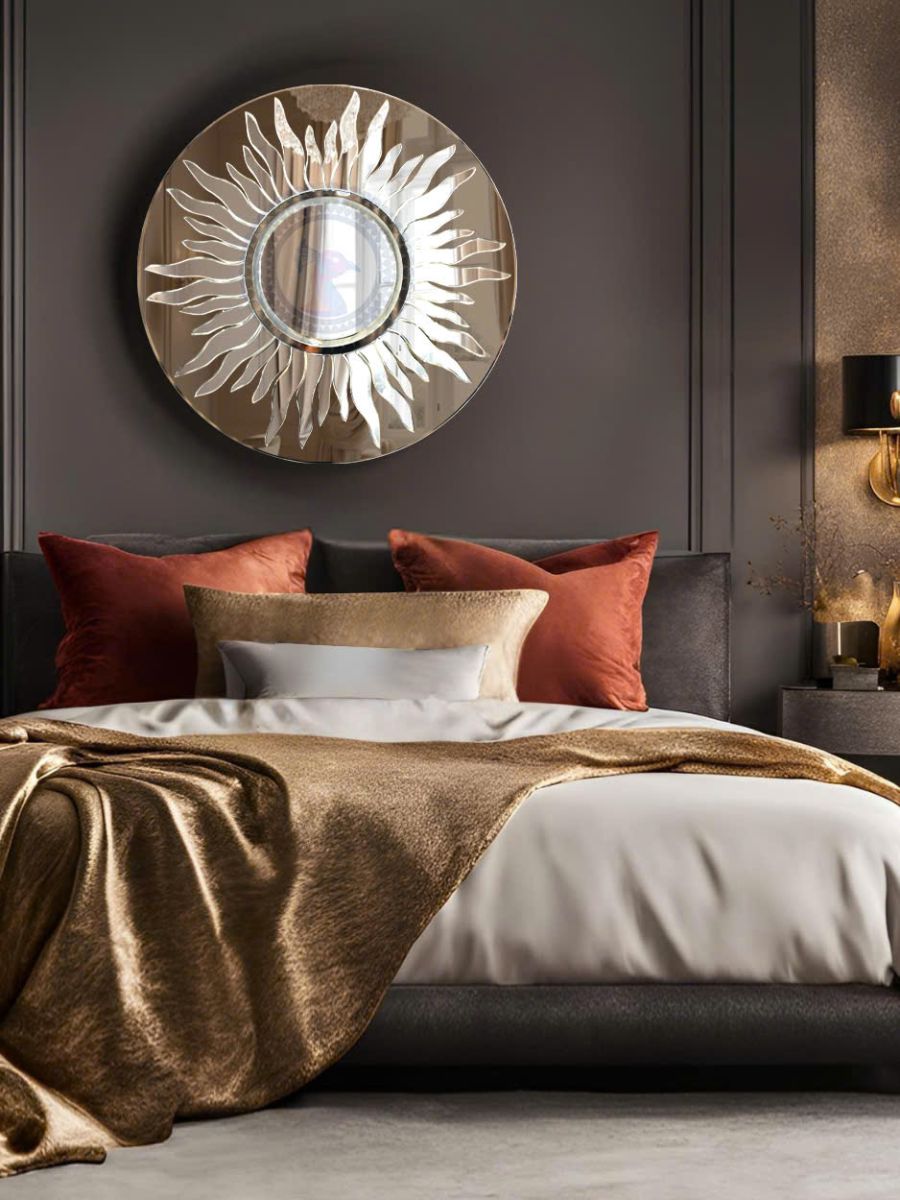 The Vesper mirror doesn’t just reflect light—it amplifies it. Its layered sunburst design captures natural and artificial light from different angles, making rooms feel more spacious, warm, and inviting. Whether placed in a refined bedroom, elegant hotel suite, or boutique entryway, it enhances both aesthetics and atmosphere.