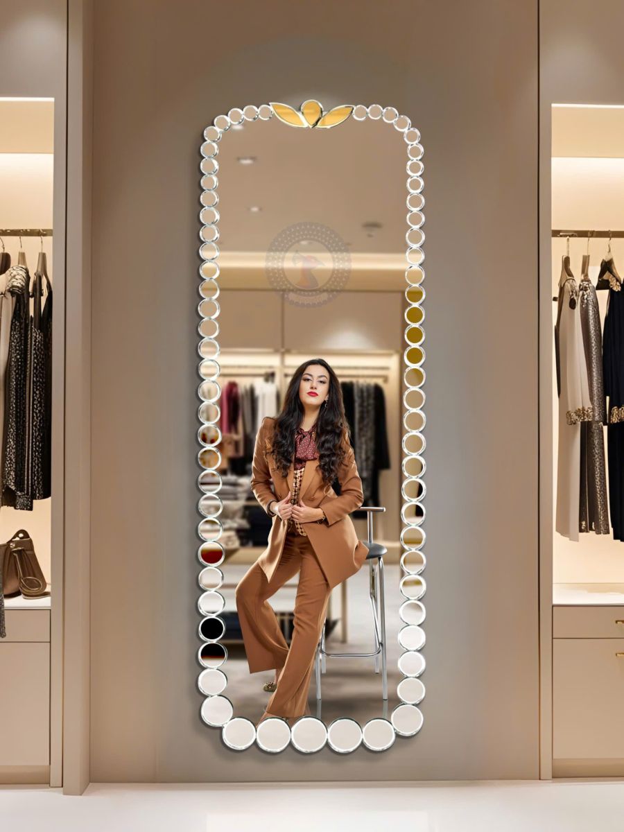 A stunning combination of fashion and function, this mirror creates a perfect space for outfit checks, self-expression, and visual depth.