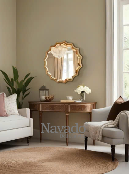 Besides, with this design not only creates the aesthetic beauty of 90cm Natasa art mirror, but also makes the image reflected in the mirror deep, sharp and beautiful clearly. Natasa decorative art mirror is not only decorative mirror in living room space, dining room, hall, ... but also suitable for use as mirror, makeup mirror, ...