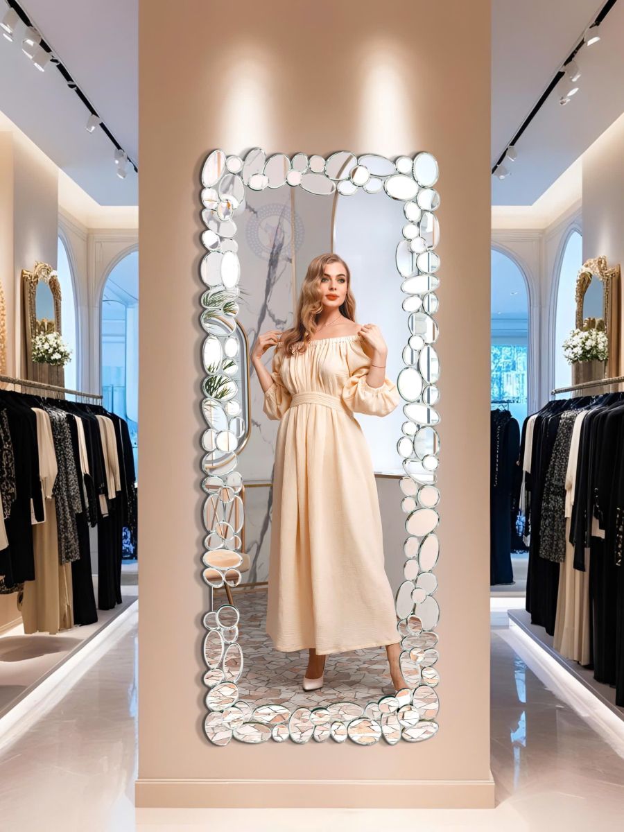 Inspired by the smooth, flowing forms of river stones, this Pebble Full-Length Vanity Mirror For Hotel Livingroom Projects brings a touch of organic artistry to contemporary interiors. Each segment of the sculpted frame reflects light independently, giving the mirror a dynamic, jewel-like shimmer that subtly transforms throughout the day.