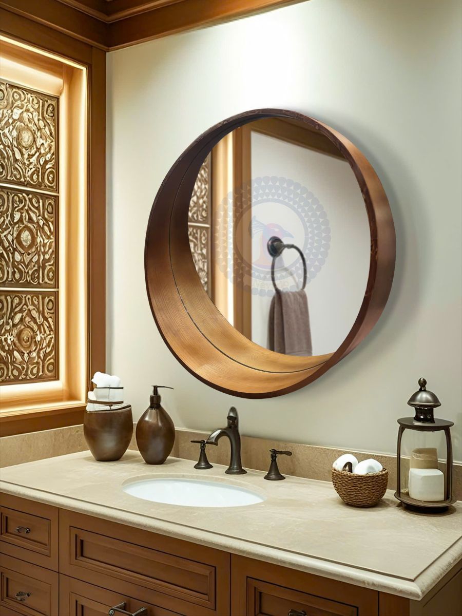 This circular mirror is a designer’s favorite for boutique hotels, resorts, or high-end residential interiors. Positioned strategically in entryways or behind reception desks, it adds an instant sense of space, light, and hospitality.