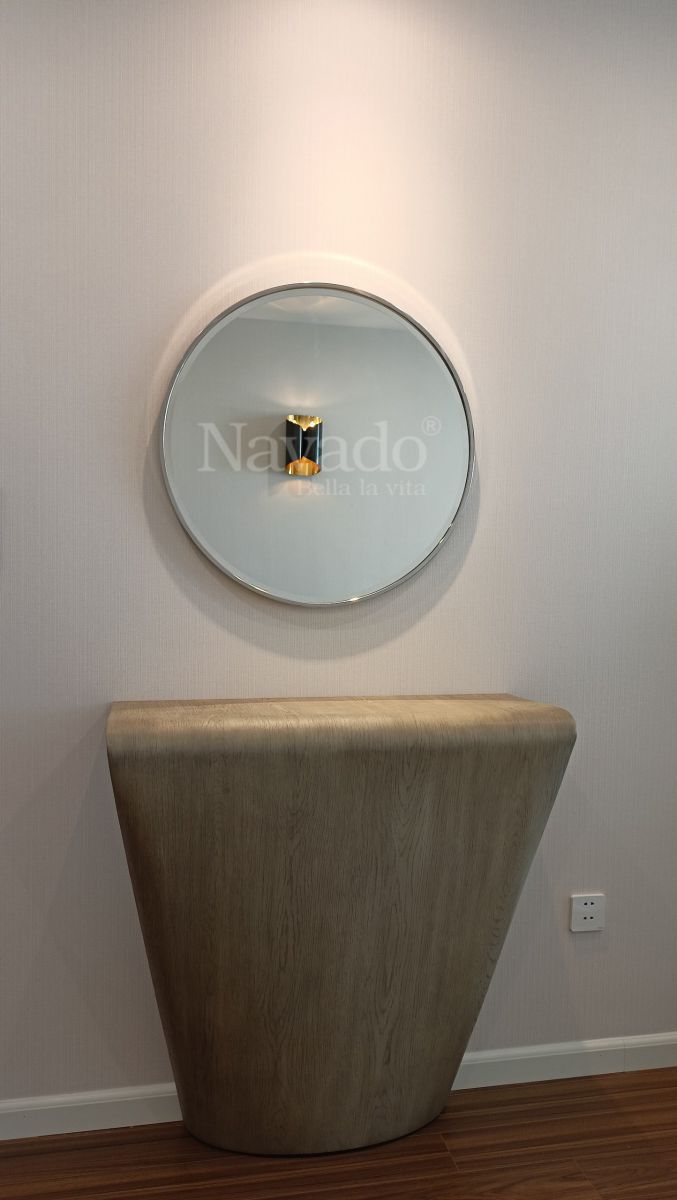 Round mirrors carry a component of delicateness to the room, leave more bad space at the "corners", and permit a greater amount of the wall to look through, which is perfect on the off chance that you have an intriguing backdrop or restroom tile to flaunt.
